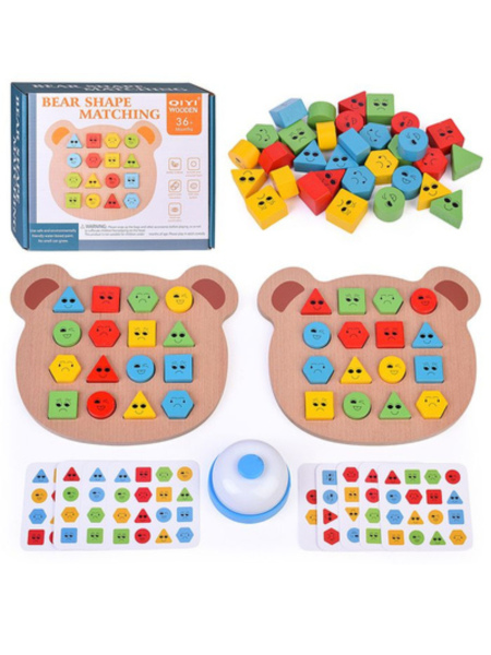 Descripción: Juego clásico de formas geométricas y colores con bases en forma de oso y piezas encajables, ideal para introducir a los niños en el reconocimiento de formas, colores y patrones, además de fortalecer la atención y la lógica. Incluye tarjetas con retos visuales y un timbre para hacerlo más interactivo.